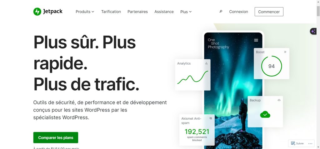 Jetpack est également utile pour améliorer la vitesse de chargement de votre site. Il utilise un réseau de serveurs mondiaux pour charger les images, ce qui permet à votre site de se charger plus rapidement, même pour les visiteurs à distance.